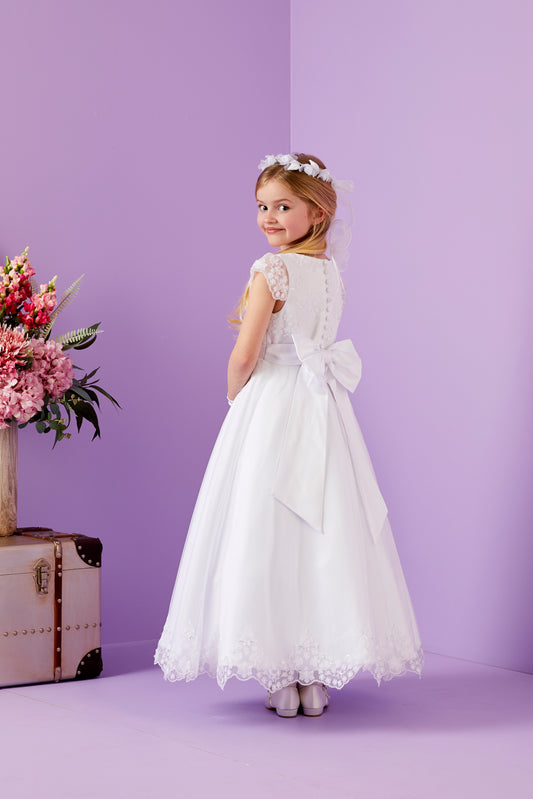 Summer Elegant Holy Communion Dress with Embroidered Bodice and Organza Skirt Available October 2025