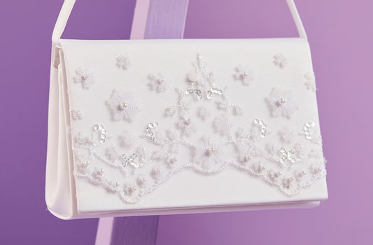 Fifi White Communion Hard Bag with 3D Bows Available October 2025