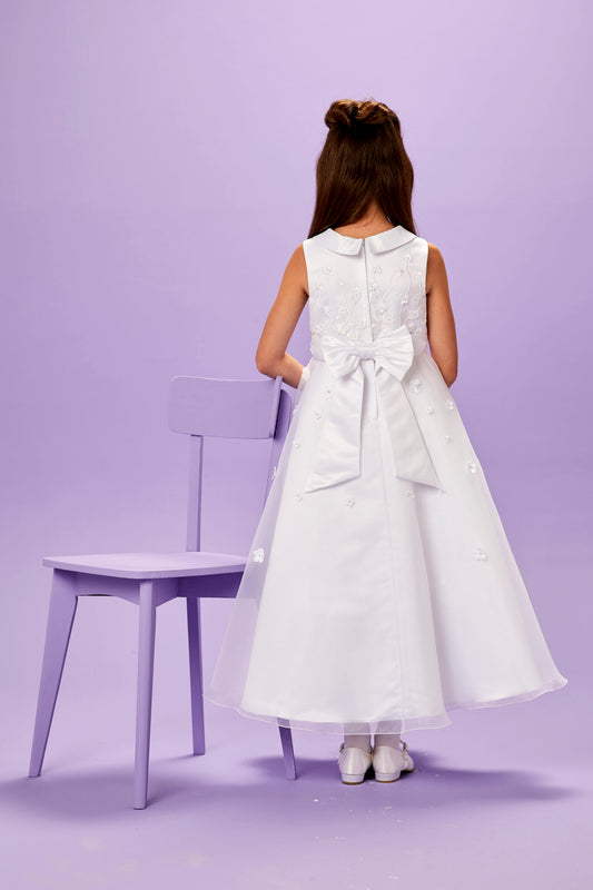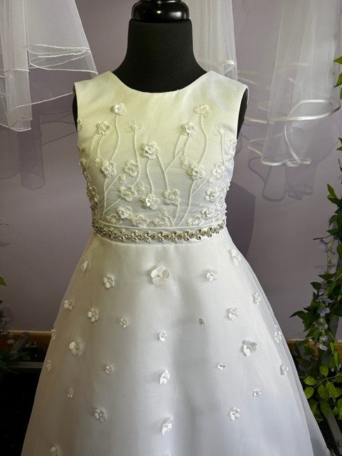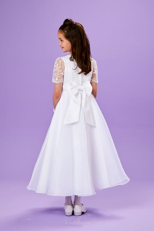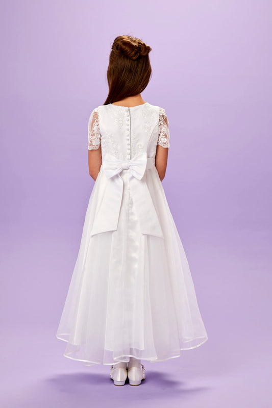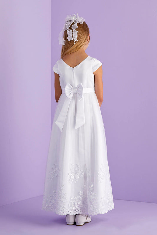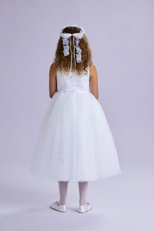 Ayda Flower Bodice Holy Communion Dress with a Net Tulle Skirt