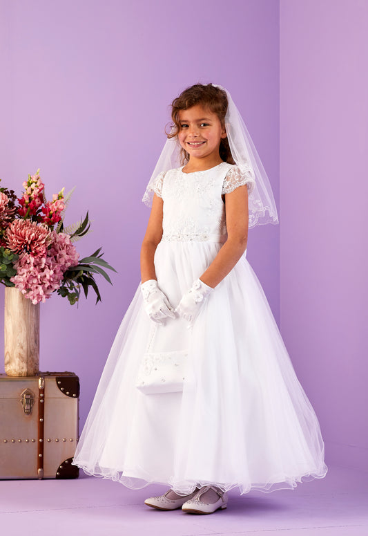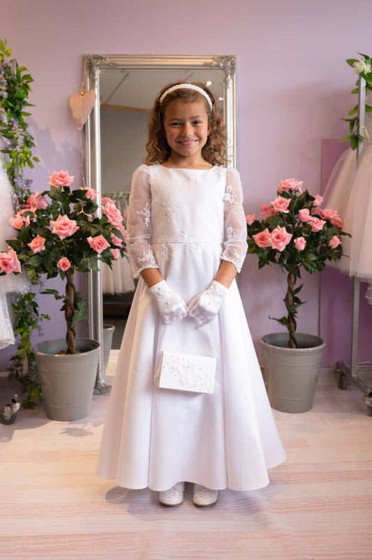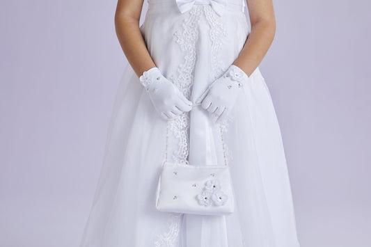 Kelly Satin Flower Communion Gloves. Back in stock October 2024
