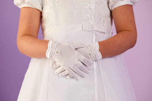 Sasha White Communion Gloves with Pearl and Sequin Wrist detail