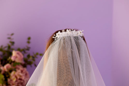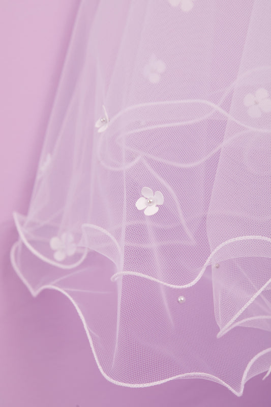 Nova 3D Flower Communion Veil with Curly Hem White Available October 2025