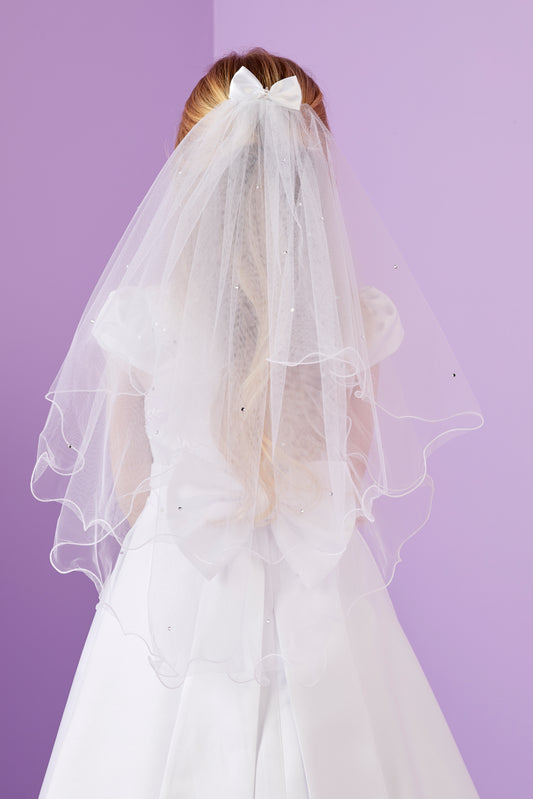 Linzi Satin Bow Diamante Communion Veil with Curly Hem White Available Oct 2025