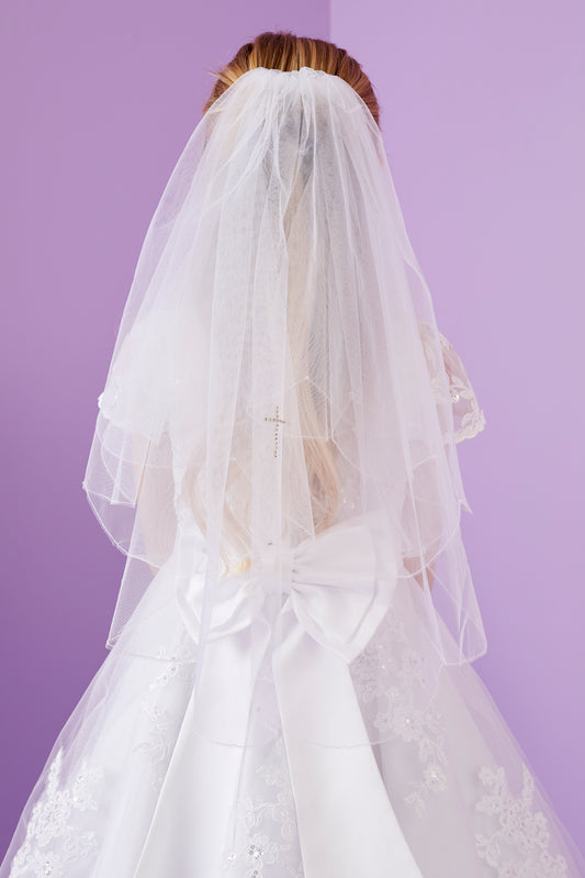 Valerie White Holy Communion Veil with Lace and Sequin Trim