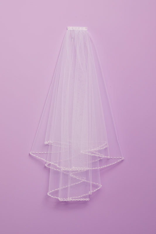 Celine Pearl and Beaded Hem Communion Veil White Available October 2025