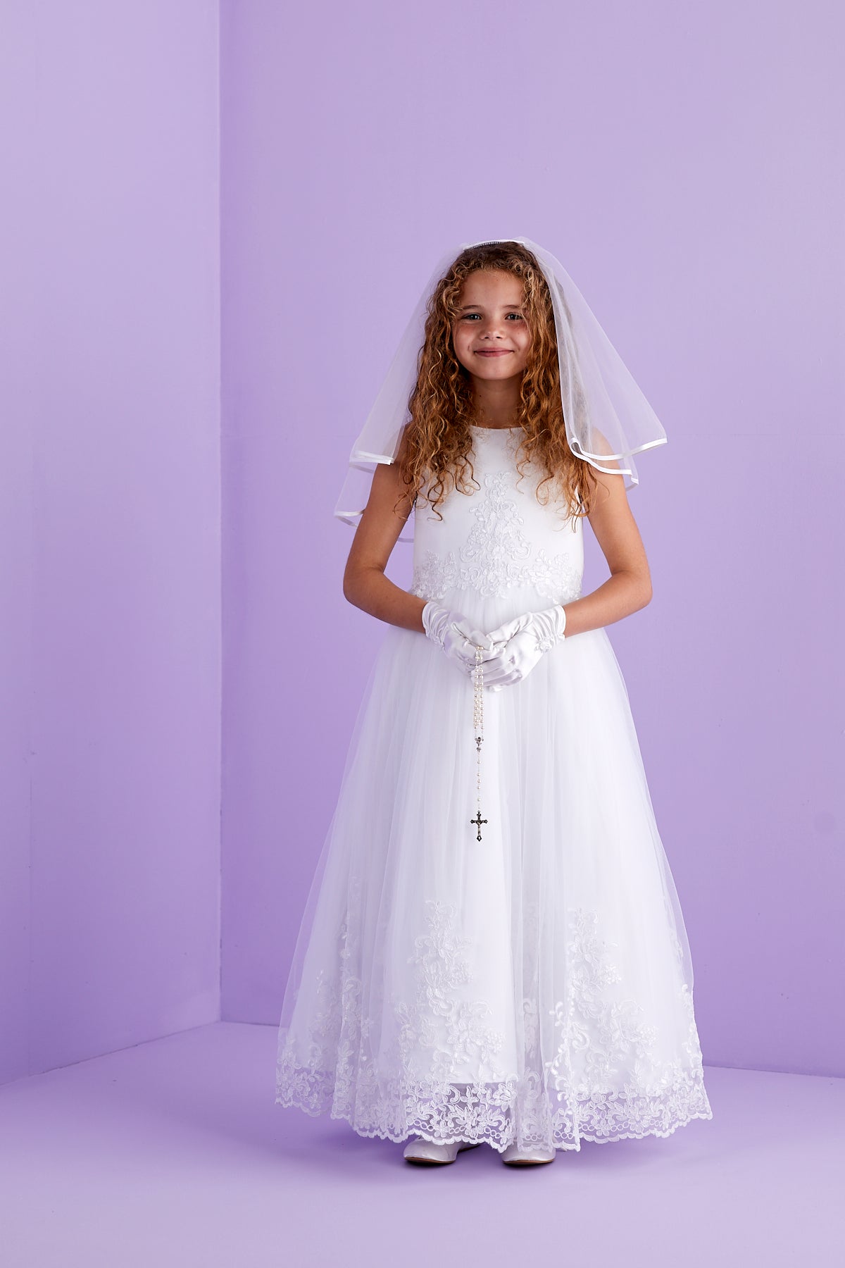 This classic dress promotes pure elegance whilst maintaining comfort during the Communion blessing.