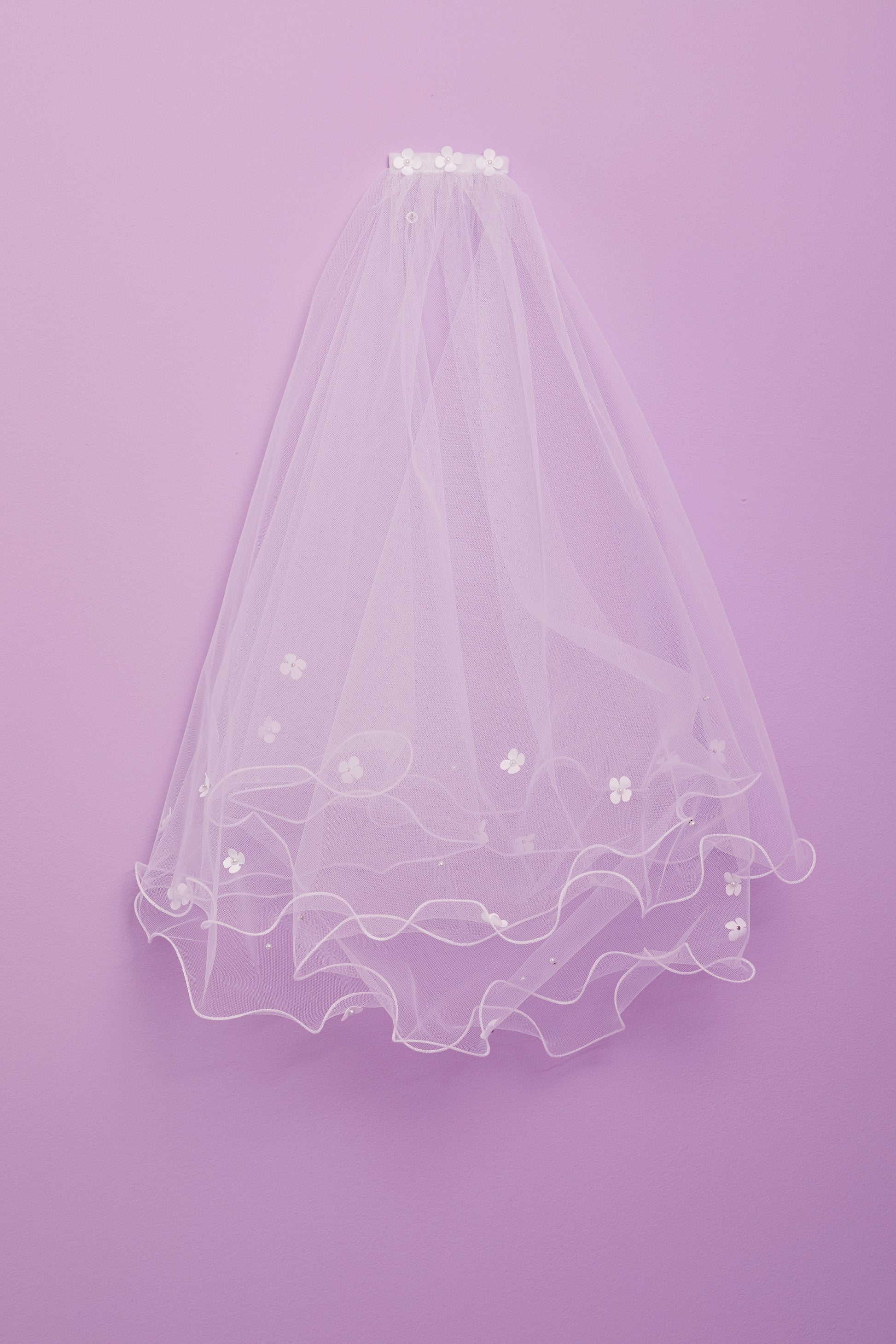 Nova 3D Flower Communion Veil with Curly Hem White Available October 2025