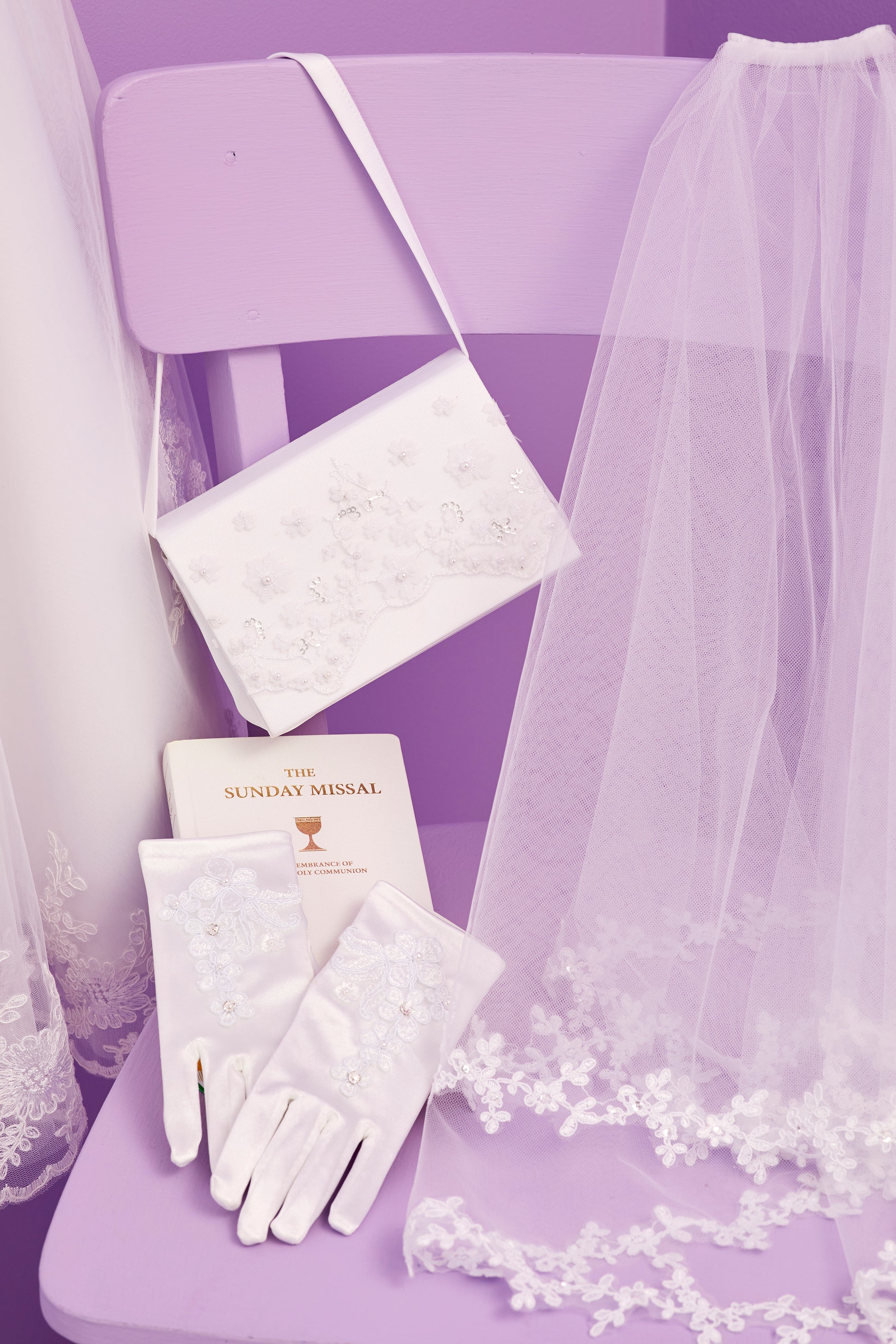 The total length of the veil is 57 cm. A stunning First Holy Communion veil for daughter, granddaughter, goddaughter, niece sister or special girl to wear on her first Communion day.
